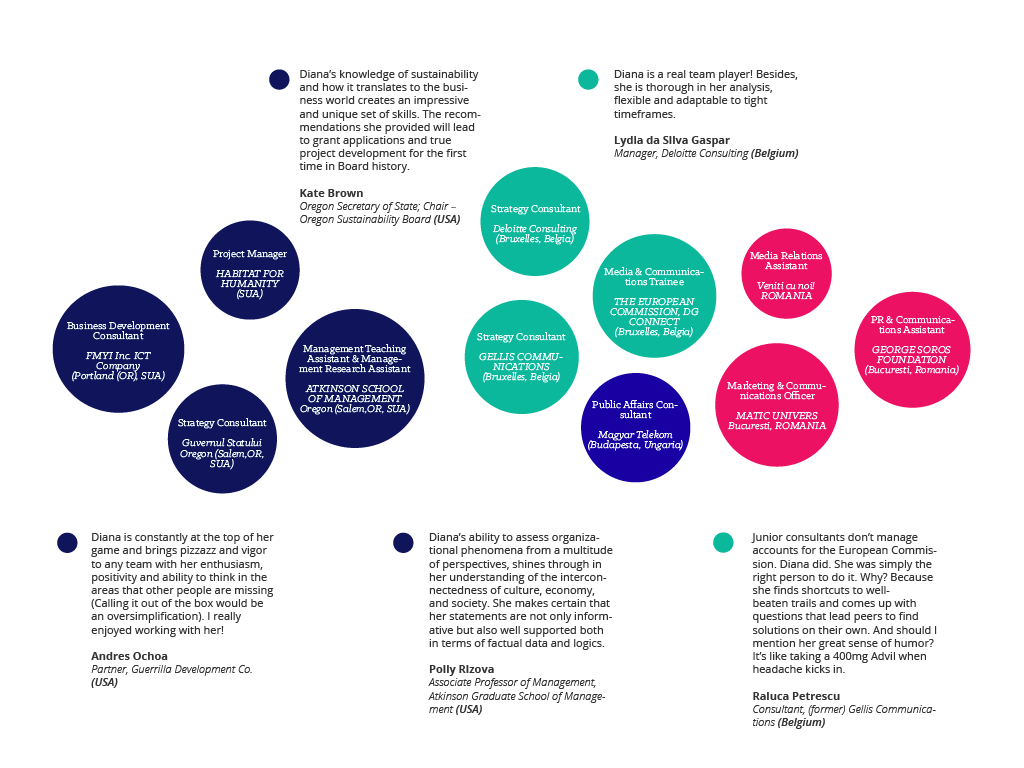 Sunt de profesie jurnalist. Am peste 10 ani de experienţă profesională în comunicare şi strategie de afaceri (analiză, dezvoltare, implementare, evaluare). Am lucrat atât în mediul privat, cât şi în sectorul public şi non-profit, pentru organizaţii din Europa şi America de Nord. Între acestea se află Deloitte Consulting (Belgia), Guvernul Statului Oregon (SUA), Comisia Europeană (Belgia), Magyar Telekom (Ungaria) şi Fundaţia Soros (România).